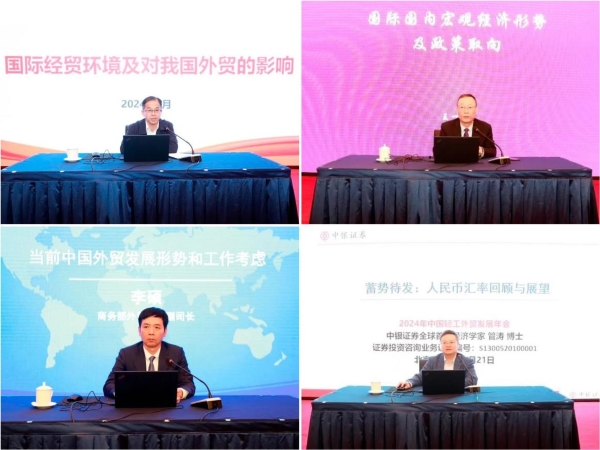 中國國際經濟交流中心副理事長王一鳴、商務部駐天津特派員辦事處特派員劉長于、商務部外貿司副司長李碩等相關部門領導、專家分別就《國際國內宏觀經濟形勢及政策取向》《當前中國外貿發展形勢和工作考慮》《國際經貿環境及對我國外貿的影響》《中央政府采購政策宣講》《蓄勢待發:人民幣匯率回顧與展望》等主題作專題報告。