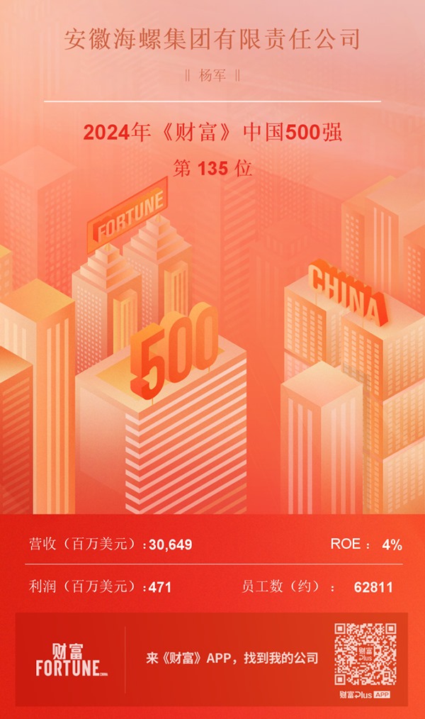 財富Plus APP于北京時間7月25日發布了2024年《財富》中國500強排行榜。海螺集團以30,648.9百萬美元的營收名列第135位。