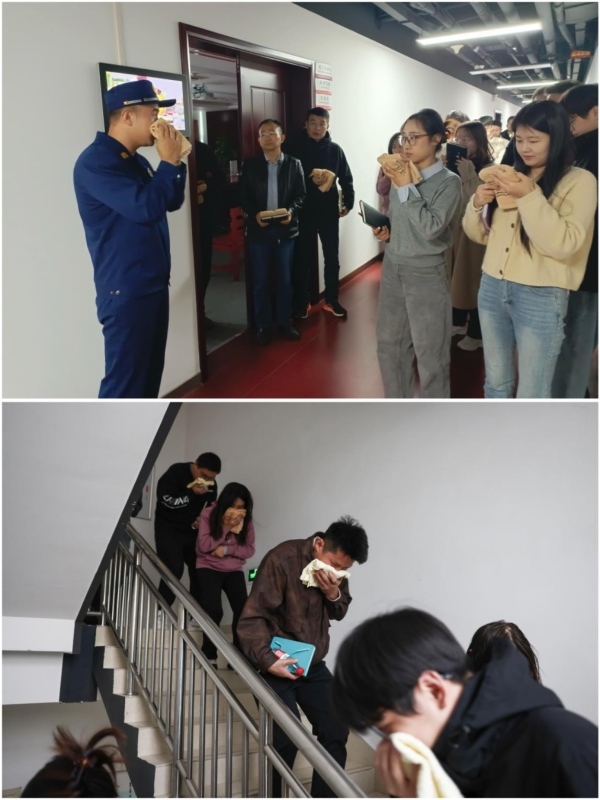 課上,石隊長圍繞火災的基本概念、火災種類、滅火的基本方法、發生火災處置、火場逃生、滅火器與消火栓的使用等方面進行了詳細講解,并通過一系列典型火災案例分析,生動展現了消防安全的重要性與緊迫性。為加深理解,培訓現場特別配備了應急毛巾,并即時組織了一次模擬火災逃生演練。隨著一聲警報響起,全員聽從指揮,捂住口鼻,低頭彎腰,迅速按照預先規劃的疏散路線,有序高效地撤離到大樓外的安全區域,展現了良好的應急反應能力。