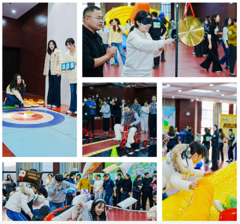 本屆運動會共設置“秋名山車神”“旱地冰壺”“火鍋英雄”“蒙眼敲鑼”“枕頭大戰”五大經典項目,既注重個人能力比拼,又注重集體的智慧、默契與配合,整個活動現場歡聲笑語,加油聲不斷。
